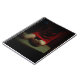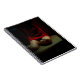 Caderno que caracteriza uma menina que modela um vermelho, camisola do crânio.