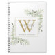 Caderno de nome de monograma de folhas de verde aquareladas elegantes com inicial de monograma dourado. Desenhado por Thisisnotme©