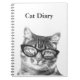 Caderno de Personalizable com a foto engraçada do gato. Ideia bonito do presente para a senhora do gato, o proprietário do animal de estimação ou o amante dos animais louco. Fotografia preto e branco do gatinho que veste vidros.