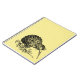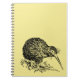 Caderno ilustrado com design preto do quivi em um fundo colorido