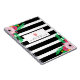 Um caderno espiral para a caracterização dos professores listras preto e branco projeta na parte dianteira com direito e superior esquerdo do design floral no fundo. Texto feito sob encomenda das características dianteiras sob a ilustração de uma maçã cor-de-rosa.