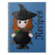 Escreva para baixo todas suas poções favoritas -- er, receitas -- nesta pasta pequena bonito. A palavra "receitas" funciona abaixo de um lado, e o outro é ocupado por uma bruxa preto-folheada com um cheio do caldeirão de ingredientes ghoulish.