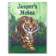 Caderno pessoal do tigre bonito trazido a você Imagine isso! Características de design nosso tigre do divertimento que anda através de uma selva verde luxúria com um amarelo, céu textured verde pintado digital por nosso ilustrador talentoso do livro de crianças, Traci Van Wagoner. Personalize suas notas com seu próprio nome na parte superior em um verde escuro (o clique "personaliza" para mudar a cor e/ou a pia batismal) e mantenha seus pensamentos pessoais seguros dentro do seu muito possuir o caderno do animal selvagem. Nosso caderno brincalhão do tigre é perfeito para amantes do tigre, amantes do gato grande, amantes felinos, amantes dos animais, e amantes dos animais selvagens de todas as idades. Mantenha todas suas notas em um lugar e não as esqueça mandar cumprimentos e notícia a todos seus amigos com o tigre de harmonização em uns artigos de papelaria da floresta tropical, no cabeçalho, nos cartões e em muito mais tudo com nossa pintura original do tigre de nossa linha animal da parada.