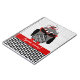Um caderno espiral que caracteriza uma ilustração de uma coruja cinzenta e preta com uma barriga do houndstooth e uns pés vermelhos. A coruja está vestindo um chapéu vermelho e preto do fascinator e uns óculos de sol vermelhos do olho de gato. Personalize com seu nome.
