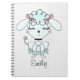 Um caderno que caracteriza uma ilustração de uma caniche azul dos desenhos animados que vestem arcos cor-de-rosa, de um colar preto com coração cor-de-rosa, e de uma corda das pérolas. Personalize com seu nome.