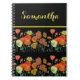 Espiral Caderno Preto Flores Florais Papoula Laranja