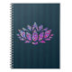 Escreva no estilo com este meditação sereno design inspirado. Este caderno caracteriza cerceta escura um fundo listrado e um impressão roxo da flor de lótus do arco-íris. O excelente para amantes da meditação, da ioga, e do zen calmo inspirou estilos! Este design está igualmente disponível em etiquetas, em uma caneta, e em uma sacola.