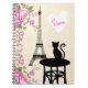 Espiral Gato de Paris Je T'aime e caderno da torre Eiffel
