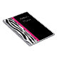 A listra preto e branco da zebra com beira cor-de-rosa personalizou o caderno. Aperfeiçoe tomando notas ou escrevendo um jornal ou um diário, etc. personalizam com seu nome, iniciais ou todo o texto que você quiser.