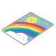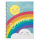 Tome notas, escreva seus desejos, sonhe… com este caderno adorável que caracteriza uma ilustração pequena original do em de um sol e uma nuvem de sorriso e um arco-íris brilhante.
