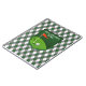 Este caderno verde, cinzento (cinzento), e branco da xadrez do argyle tem um emblema de um campo de golfe nele, mostrando os verdes e um furo com uma bandeira vermelha nele e uma bola de golfe ao lado dele. Seria uma grande maneira de manter-se a par de seus jogos memoráveis, ou seus cursos do favorito, ou de manter-se a par apenas de suas contagens e melhorias de jogo. O texto é customizável.