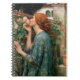John William Waterhouse a alma do caderno do rosa. Pintura a óleo em canvas desde 1908. O Waterhouse inglês de John do pintor encontrou a inspiração em temas mythical e literários. A alma do rosa é inspirada pelo poema do senhor Tennyson de Alfred pelo mesmo nome, e caracteriza um redhead novo em um vestido azul que está em um jardim do país. Levanta um cor-de-rosa aumentou a sua cara, fechando seus olhos para recolher sua fragrância. Um grande presente para fãs de J.W. Waterhouse, Pre-Raphaelites, pintura literária, e art. romântico.