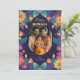 Este cartão de "Boas Festas Diwali - Noite em Flor" tem um fundo azul escuro rico com um design festivo radiante ao redor da moldura de foto personalizada. A própria moldura é oval, destacando o retrato central da família.