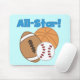 Nosso All Star ostenta o texto azul das características do mousepad que lê "All-star! ", um futebol, um basebol, e um basquetebol em uma luz - fundo azul!