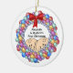 Os primeiros enfeites de natal do gêmeo caracterizam um par adorável de espreitar gêmeos com uma grinalda! Personalize com sua informação do bebê e data e você são todos ajustam-se para ir! Presente datado maravilhoso da lembrança para Natal do seu bebê o ø.