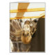Girafa que espreita dentro sob o telhado para ver o que está acontecendo