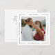 Este moderno e mínimo cartão com fotos Save the Date apresenta uma borda branca com texto preto com todos os detalhes da placa que enquadram a foto. O tamanho quadrado se destaca e faz um salto de uma maneira clássica e elegante. A parte de trás do cartão tem um local para compartilhar os detalhes do seu site de casamento, juntamente com um código QR para o site.