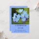 Esta celebração do convite à vida apresenta flores azuis que me esquecem e não na parte superior do cartão e, abaixo, o nome da pessoa cuja vida está a ser celebrada juntamente com as suas datas de nascimento e morte. No verso, há um pequeno grupo de nãos que me esqueceram e todos os detalhes do evento. O texto em frente e verso é editável, portanto, vá em frente e altere as mensagens, a cor da fonte, o posicionamento, o tamanho e o estilo e torne-o seu. Se você precisar de outros itens para combinar com esses convites, como placas de papel e guardanapos jantados ou se você preferir outro tipo de flor, por favor entre em contato comigo através do Zazzle e eu farei o melhor para ajudá-lo. Espero que adorem esta bela Celebração Esquece-Me-Não dos Cartões de Convite à Vida!