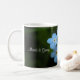 Umas economias bonitas o design da data do azul esquecem-me não flores em uma caneca de café que caracteriza os nomes dos noivos. Sinta livre personalizar isto com sua informação pessoal ou contactar-me com todo o auxílio!