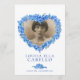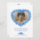Ordem de serviço do programa funerário floral azul e branco de dupla face. Programa de arte elegante, substitua o texto de exemplo e os porta-fotos por seus próprios detalhes especiais de fotos e informações. Outros itens correspondentes estão disponíveis. Arte lavada com tinta manual original e aquarela, nãos-me-esquecidos em um design de lavagem do coração de flor, por Sarah Trett. www.sarahtrett.com para www.mylittleeden.com