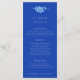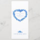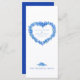 Tinta moderna e cor d'água, arte floral de coração em azul e branco no menu janto de casamento ou no pacote de cartão de rack de menu especial de evento. Edite este menu de 4 cursos com suas próprias palavras. Design simples, mas moderna, em azul e branco. Ideal para um casamento ou evento com tema de amor não-me-esqueço ou azul. © Original botânico esqueça-me-não-flores em um desenho de tinta cardíaca e de lavagem com aquarela e design por Sarah Trett exclusivamente para www.mylittleedenweddings.com no Zazzle.