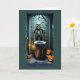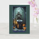 Este cartão de Dia das Bruxas, esquisito e humorístico, apresenta um esqueleto assustador sentado num banheiro mal iluminado e estranho. A cena é decorada com elementos clássicos do Dia das Bruxas, incluindo lanternas brilhantes, velas tremendas e morcegos voando contra a parede ladrilhada. A postura casual, quase indiferente do esqueleto adiciona uma reviravolta comédica ao cenário assustador, fazer este cartão perfeito para aqueles que desfrutam de uma boa risada durante a temporada de Halloween.