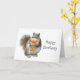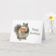 Um esquilo segura uma bebida gasosa. Adicione suas próprias palavras para tornar este cartão de aniversário ainda mais especial.