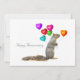 Um esquilo segura um monte de balões em forma de coração neste cartão de aniversário fofo.