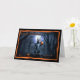 Esta carta branca de Halloween apresenta um adorável esquilo ligeiramente assustador segurando um pequeno jack-o-lanterna sua pata. Colocada contra um pano de fundo de uma floresta escura e sombria iluminada pela luz de uma lua de cheio, a cena captura o misterioso ambiente da noite de Halloween. O esquilo, de pé sobre as patas traseiras, parece pronto para se juntar às festividades do Halloween, cercado por algumas abóboras dispersas no chão da floresta. A placa está bordada com uma borda laranja intermitente, adicionando um pop de cor que contrasta com o fundo escuro. A mensagem "Feliz Dia das Bruxas" aparece no topo numa fonte divertida, ligeiramente estranha, que complementa o tema geral. Esta carta é perfeita para aqueles que apreciam o lado divertido e ligeiramente assustador do Halloween e apreciam um toque da natureza nos seus cartões de natal.
