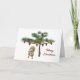 Um esquilo bonito se senta debaixo de uma pequena árvore decorada com uma garland de amora e pinecones neste doce cartão de Natal.