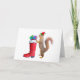 Um esquilo num Pai Natal que segura um cheio de botas vermelhas neste cartão de Natal de esquilo fofo.