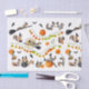 Um clã de bruxas de esquilo traz abóboras e lanternas-de-jack neste colorido papel de tecidos do Halloween.