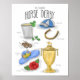 Um dia nas corridas é emocionante e divertido. Agora, adicione um cretino, um chapéu decorativo, um hóquei especializado, algumas rosas vermelhas, um troféu e um pouco de sorte e você tem um cavalo excelente derby! Esta mão desenhada poster está cheia de essências para um espetacular derby. É o sotaque perfeito para sua casa para qualquer amante de cavalos ou pessoas que adoram passar um dia nas corridas.