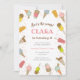 Tenha um partido do sorvete para seu pequeno este verão! Este convite adorável do aniversário caracteriza sorvetes coloridos e bonitos e popsicles e uma parte traseira cor-de-rosa do céu.