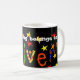 Há quanto tempo você está pintando/desenhando? Você já teve algum treinamento formal em Arte/Ilustração? Qual é a coisa mais útil que você aprendeu com os professores de Arte (se houver!)? Você é influenciado por algum artista em particular? Que meio você prefere (e porquê)? Por que você pinta manualmente do que usando um programa de computação gráfica? Quanto tempo gasta com pintura/desenho? Quanto tempo um design normalmente leva do início ao fim? Onde você consegue suas ideias? Vende o seu trabalho - em caso afirmativo, onde? Você gosta do promocional de vender seu trabalho? Você tem algum conselho para outros designers/ilustradores de cartões saudáveis? Quais são seus planos/aspirações para o futuro em relação à sua colagem de papel? O fundo é preto e o nome, Oliver, é escrito em letras coloridas em papel e borrifado com estrelas vermelhas, amarelas e laranja. O texto "Esta caneca pertence a..." está escrito logo abaixo da borda em branco.