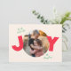 Esta é a estação para ser alegre! Este simples cartão de Natal com fotografia de solteiro apresenta uma fotografia em círculo como o "o" na palavra "alegria". O texto do estilo manuscrito moderno é totalmente editável e pronto para sua personalização. Este cartão é uma maneira divertida de deixar sua foto brilhar e enviar torcida de férias para amigos e familiares. As costas têm um padrão polka festivo e colorido que você pode remover se quiser um cartão mais simples ou preferir espaço para adicionar uma mensagem maior. Este design também está disponível como download digital.