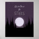 Um céu roxo estrelado com uma lua de cheio brilhante na floresta escura toma palco central neste poster celeste. Está escrito nas estrelas com estrelas soletrando a palavra estrelas brilha através do céu iluminado pela lua. Use este poster como festa de noivado, chá de fraldas ou festa de astrologia.