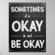 ÀS VEZES, NÃO SE IMPORTA QUE NÃO ESTEJA TUDO BEM. Um poster excelente para se manter em um escritório de orientação escolar, terapeuta infantil ou psicólogo infantil para lembrar crianças, adolescentes ou adultos que eles são seguros e que às vezes é bom não se sentir bem e pedir ajuda. Uma moda e na moda para decorar o conselheiro ou o escritório da assistente social! Apresenta a tipografia do excelente em um fundo de quadro negro.