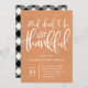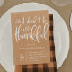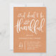 O convite para janto Rustic Thanksaking apresenta um fundo de kraft cor de laranja quente com letras brancas. "Coma, beba e seja grato" aparece no topo em letras brancas escritas à mão, acentuadas com grampos de folhas do outono. Personalize com seus detalhes de convite abaixo. Use este belo convite rústico para jantas de Ação de Graças, festas de janto ou comemorações de "Ação de Amizade".