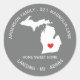 Estado exclusivo do MICHIGAN Novo adesivo de etiqueta de endereço residencial definido em um fundo de cinza com um coração e avião vermelhos.