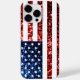 EUA sinaliza faux azul vermelho brilhando Case-Mate iPhone 14 Pro Max Case. A bandeira dos EUA em vermelho e azul brilha. Usamos a foto de faíscas, não de reluzentes!
