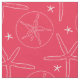 Este tecido de tema da praia ilustra dólares de areia e estrelas-do-mar em branco com um fundo cor-de-rosa/salmão que pode ser mudado para qualquer cor de sua escolha. Uma opção perfeita e versátil para a vossa decoração do tema do oceano.