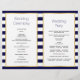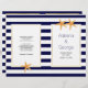 Starfish e listras brancas azuis marinho praia dobraram cerimônia de casamento e programa de festas. Os elementos deste modelo do programa de casamento são o padrão marinho azul e branco listrado e o estribo em um quadro branco com seu texto. Escolha apenas o papel de valor para este programa à medida que ele se dobra bem e o dobra manualmente ao meio.
