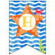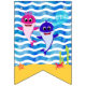 Esta bandeira tubarão-temático do bebê pode ser personalizada para seu pequeno seu partido. Substitua as letras com suas próprias cores do fraseio/pia batismal!