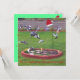 Estes divertidos, Natal em julho, convites, apresentam um bando de pássaros aproveitando a alimentação de pássaros em um dia de verão. A vara mais alta é tocada com um chapéu de Papai Noel. Na parte de trás do cartão estão os detalhes para convidar seus convidados a se juntar ao seu rebanho. Os detalhes podem ser personalizados nos formulários modelo. Obrigado por comprar CherylsArt no Zazzle.
