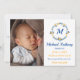 Bem-vindos ao seu novo bebê rapaz no mundo com este lindo e elegante anúncio de nascimento do bebê. A foto, o monograma inicial, o nome, a data de nascimento, o peso e o nome dos pais são todos personalizáveis! Parabéns pelo novo bebê!