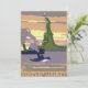 Ilustração vintage dos Estados Unidos da América, arte deco estilizada, pôster de viagem com um famoso ponto turístico da Cidade de Nova York, a Estátua da Liberdade (Senhora Liberdade) segurando sua tocha e barcos e navios no porto.