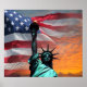 Poster Patriótico com Bandeira e Estátua da Liberdade dos EUA