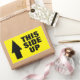 Este adesivo de flecha para cima para movimentação e envio. Etiquetas de advertência personalizadas em preto e amarelo para caixas móveis separáveis, enviando pacotes frágeis e muito mais. Manípulo internacional com símbolo de cuidado. Cores personalizáveis. Localizável para relocalização, escritório, negócios, empresa, escola, serviço de entrega, webshop, serviço de encomendas, empresa de transportes e muito mais. Modelo de tipografia moderna em negrito