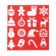 Fundo vermelho-escuro com símbolos de Natal. Resolva a vida de alguém durante a estação festiva!